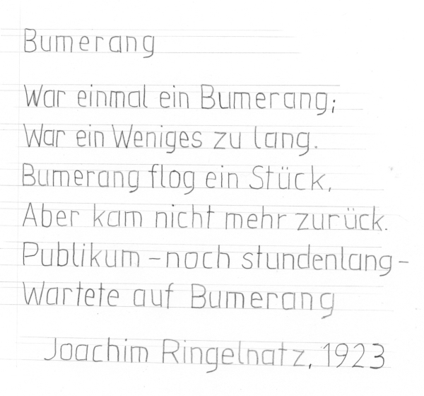 Schreiben Sie vier Verse in Normschrift.