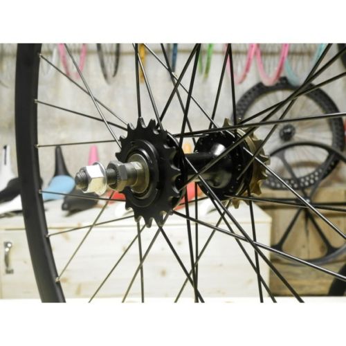 Eventuell geht das auch mit einem Singlespeed Hinterrad, Spacer raus und/oder dünnere Kontermuttern (von einer Mehrfach-Nabe).