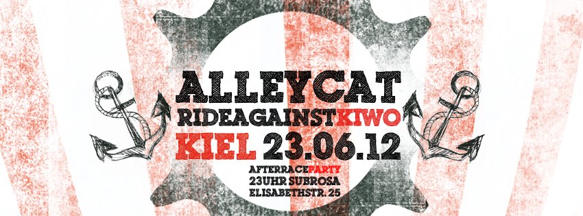 23.06.2012 Alleycat 20:00 Start: Mensa I (Westring) Erstes Alleycat in Kiel. Läuft parallel zur Kieler Woche