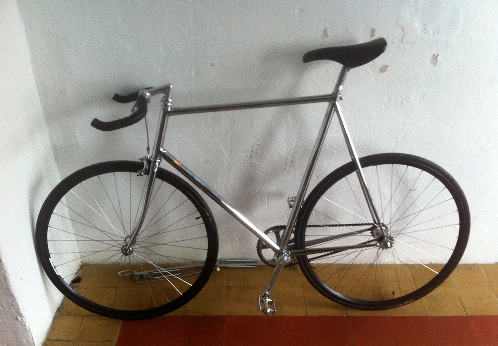 Meistens fahr ich sie SS, manchmal aber auch fixed (HR-Nabe ist ne Dura Ace Flip Flop), dann kommen