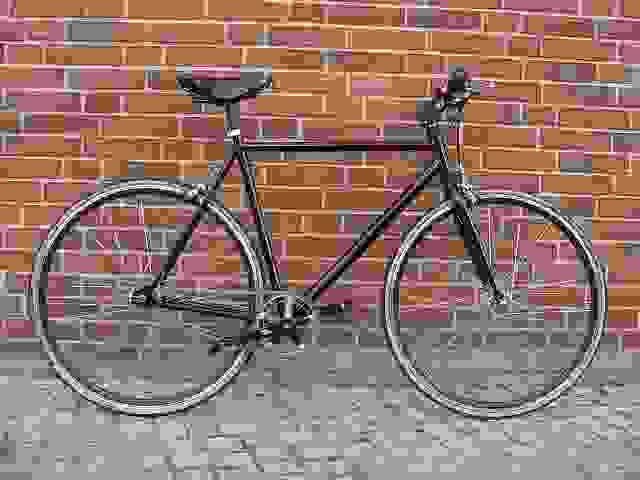 Korrektes Rad! Würd ich so auch fahren. Und das silberne Kettenblatt harmoniert gut mit den Bremsflanken und Naben! Schlichtes, funktionelles Rad! :daumen:
