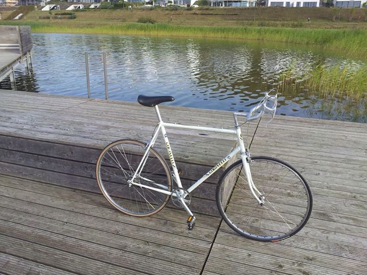 Ich hab mir dann ein altes Motobecane-Damenrad geschnappt, das Hinterrad mit Fixienabe neu eingespeicht und seitdem hab ich Spass mit dem Teil. Ist leider aber ein paar cm zu klein, doch gestern habe ich einen alten 56er Rahmen geschenkt bekommen, den ich jetzt komplett neu aufbauen werden.