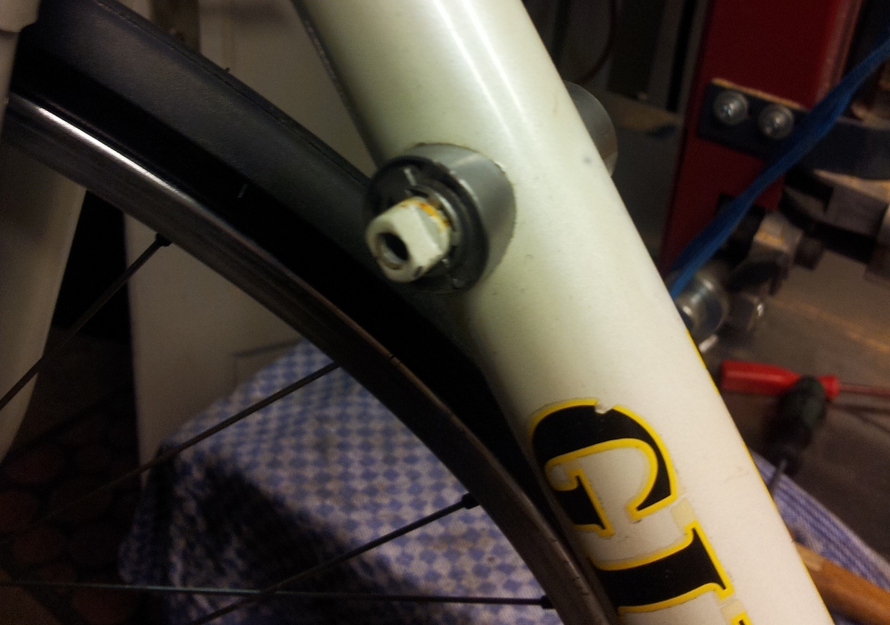 Das Hinterrad ist aus meiner ersten Kreation mit einer Novatec-Nabe, 15er Ritzel, an der Kurbel hab ich das 42er Kettenblatt gelassen und die Schrauben abgeschliffen. Eine neue Nabe ist schon bestellt, dann wird ein neues Hinterrad mit der vorhandenen (schmaleren) Felge gebaut. Das Mädchen-Fixie (ehemals Motobecane-Damenrad, Rahmenhöhe hab ich nicht gemessen, aber klein) wird dann in die Wertschöpfungskette eingebracht. Pedale mit Straps kommen auch bald und ein gerader Lenker. Der aktuelle ist der abgesägte Rennlenker. An den geraden Lenker werde ich dann wohl auch andere Bremsgriffe anbauen müssen. Beim Lenkungslager hab ich eine Überraschung erlebt: es fühlte sich nicht gesund an beim Lenken, also hab ich es auseinandergeschraubt und unten fielen direkt die Kugeln raus. Die vorhandenen Fettreste waren knochentrocken. Beim oberen Lager war alles ok. Da wird wohl Wasser vom Reifen das untere Lager komplett ausgewaschen haben. Ich habe es erst mal gereinigt und neu gefettet zusammengebaut. Langfristig würde ich gerne ein gekapseltes Lager einbauen. Gibt es sowas für Gewinde-Steuersätze?