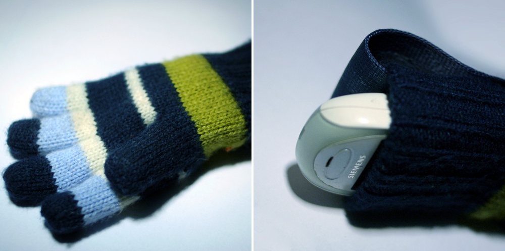 hatte ich hier schon irgendwo von meinem neuen handyhalter erzählt? ich weiß es grad nicht mehr. hatte auf schnee gebettet an einer ampel spätabends einen kindrehandschuh liegen sehn, der mir farblich ganz gut gefiel und genau groß genug für mein telefon war, das ich in zivil immer nirgendwo unterzubringen weiß.