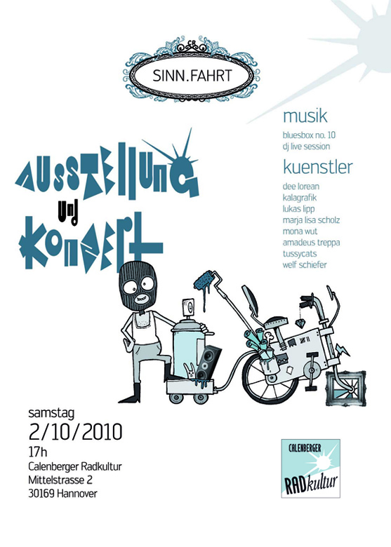 AM 2.10.2010 gibts bei uns ne SINNFAHRT mit vernissage und so weiter.livemusik,bierchen und soweiter.info`s in ein zwei tagen.flyer folgt in wenigen stunden.der ist leider noch zu gross.