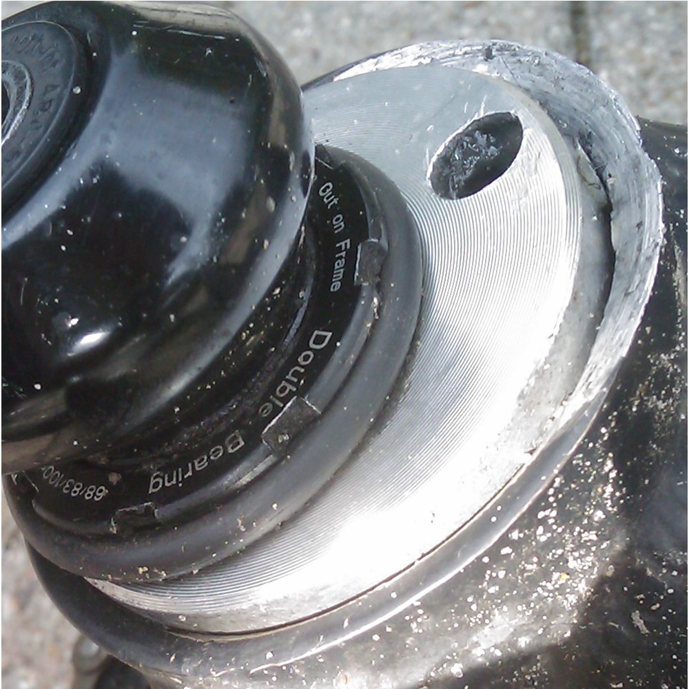 Einer der Zweiradmechaniker hatte das Problem damals schon erkannt und nach einer gemeinsamen Reinigung des Lagers eine Münze ins Lager gelegt und es danach erst wieder festgezogen. Am Telefon sagte er mir, als das Rad wegen des Problems im Laden war, er habe es jetzt mit Kleber gelöst (was genau er geklebt hat, weiß ich nicht). Und er sagte auch, dass da demnächst wohl ein neuer Rahmen fällig ist, wenn es jetzt nicht hält.