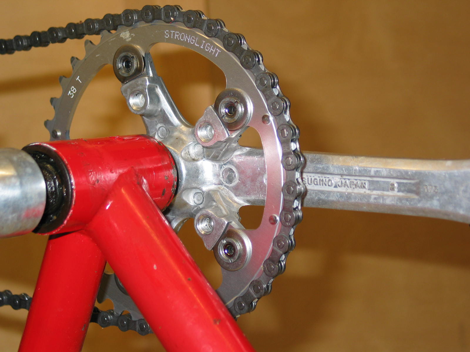 silberne Sugino-Kurbelgarnitur, aber mit schwarzen Kettenblättern, schon