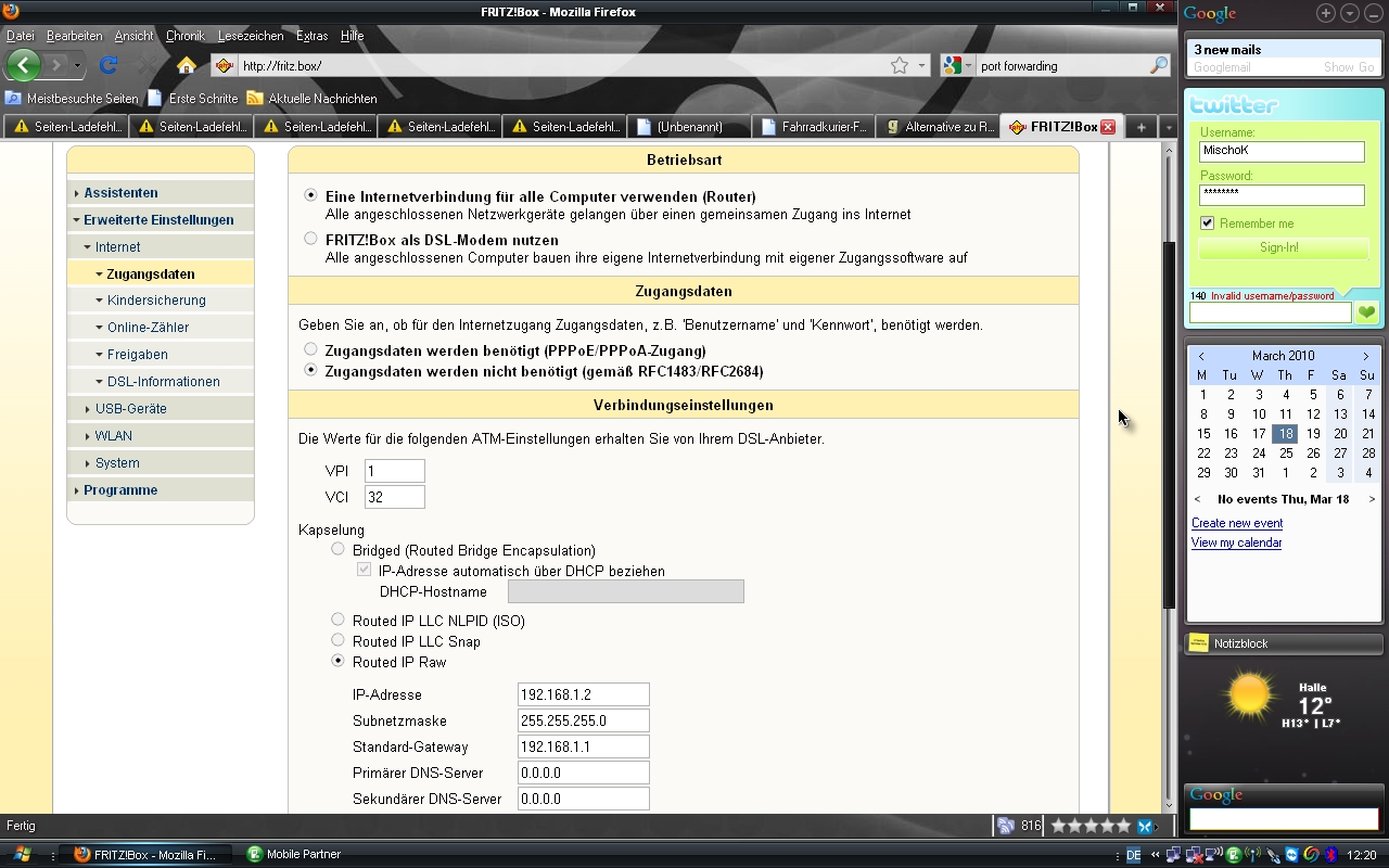 boa Zigge...da würd ich Dir jetzt gern im Detail helfen, aber das ist 3 Jahre her. Ich weiß, nur noch ich hab da auch lang gefrickelt und letzten Endes war es ganz einfach...eben der oben beschriebene Eintrag im Router-Menü. Aber wo und wie genau ... ich weiß es nicht mehr. sorry.