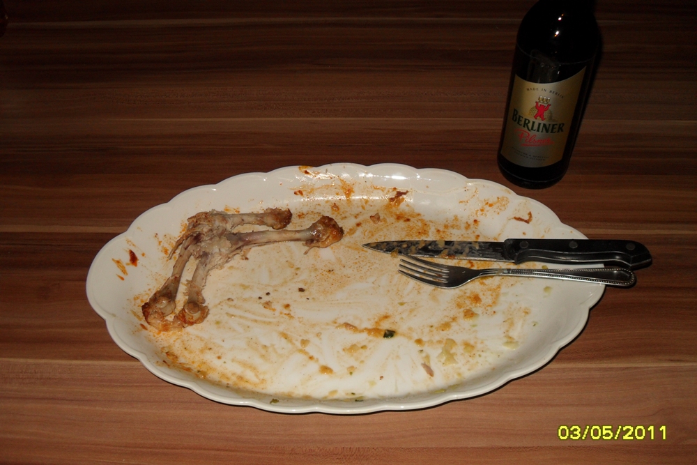 Hähnchen-Schenkel-Keulen aus dem Ofen, Wirsingkohl gedünstet, Bandnudeln... =P