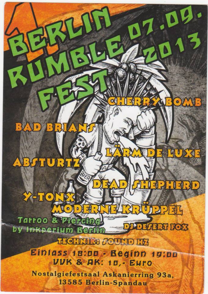 Der Uwe (Betreiber des Rock Café ZILINI) und Kette (der sauberste Punk Deutschlands) veranstalten das "1. Berlin Rumble Fest" im beschaulichen Spandau. Für die, unter euch, die noch nie über den S-Bahnring hinausgekommen sind, Spandau ist der Bezirk hinter Wilmersdorf in westlicher Richtung.