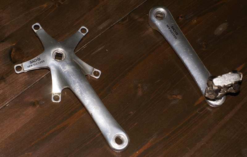 Ich hab hier noch eine Sachs New Success Kurbel. Silber. 144er Lochkreis. Innenlager könnte ich eventuell dazu liefern.