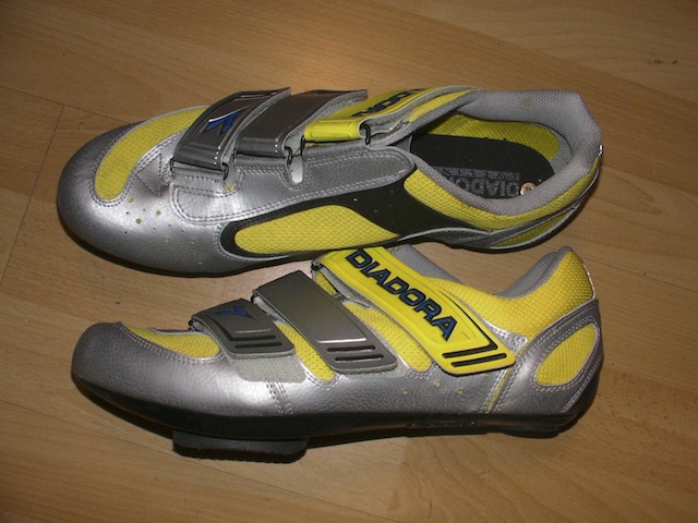1 x Diadora Rennradschuhe 3-Loch und SPD!, Größe 47 (fallen normal aus, Innensohllänge 28,7cm) einmal angehabt - Kratzer auf der Sohle vom Gehen, leicht und gut durchlüftet (Bild im Anhang)