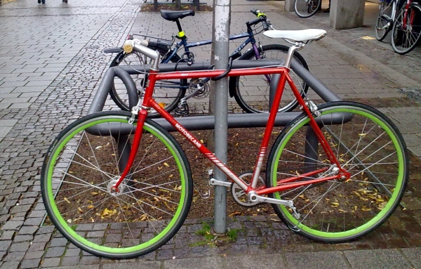 [...] Das was da angelehnt ist, ist nicht zufällig deins? Interessante Bremshebel Position.