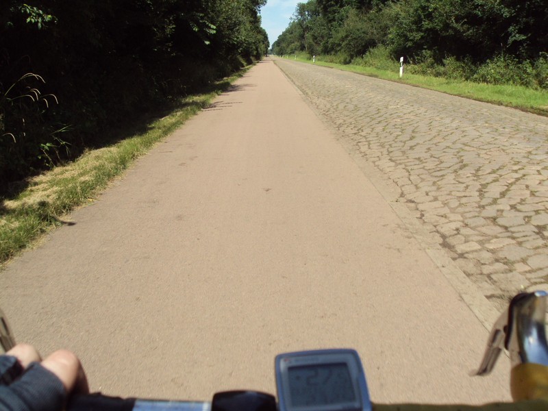 von Dessau richtung Wittemberg gings über den R1, der leider diverse kilometer Schotterpiste bereit hielt. auf 25ern kein vergnügen, aber landschaftlich sehr reizvol. würd ich wieder fahren ...