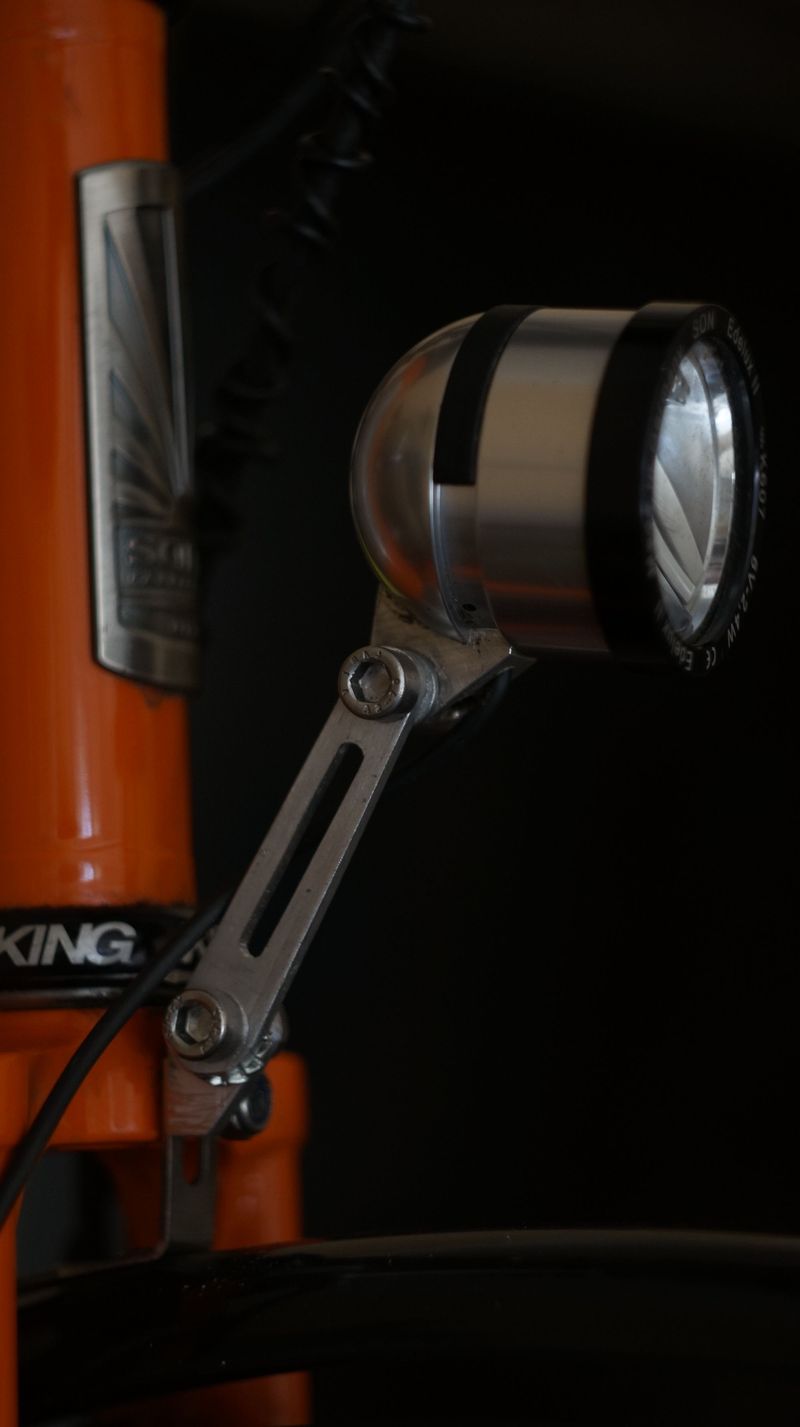 Einen AXA Pico30 Dynamo-Scheinwerfer aufgeschraubt.