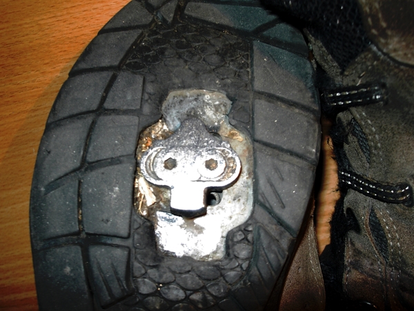Leider (etwas) abgenutzt und kaputt, aber die Cleats flutschen ganz von alleine in die Pedale :D