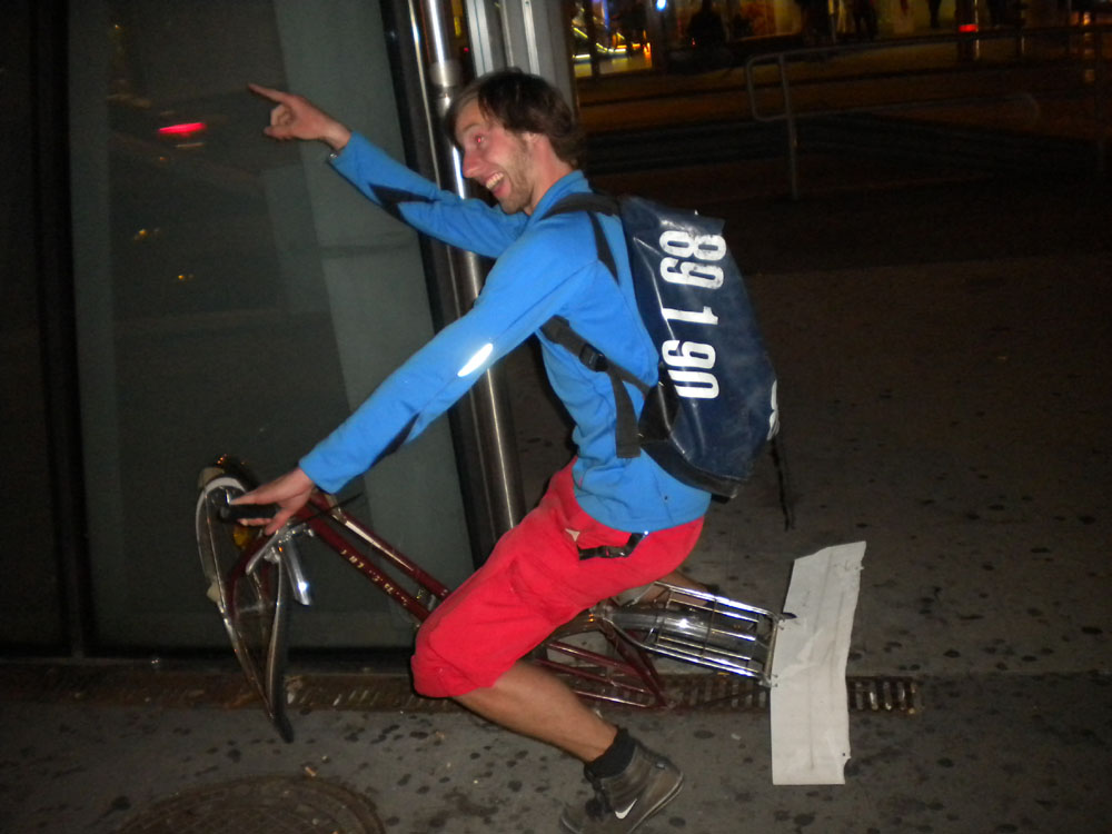 Was ich eigentlich wissen wollte ist, ob sich jemand auskennt oder Erfahrungen hat mit Fahrradbotendiensten in New York! Bin zurzeit Fahrradbote in Wien und möchte für 4-5 Monate nach New York gehen und dort als bike messenger arbeiten. Was ich so gehört/gelesen hab gibt es dort eine fette fette Fahrradhistorie und Tradition und eine unglaublich große Community! Auf Fahrradbotenseiten im Internet hab ich gelesen dass es ziemlich viele Botenfirmen gibt und es kein Problem sein sollte dort angestellt zu werden. Was aber ein Problem werden könnte ist eine Arbeitserlaubnis bzw. ein Arbeitsvisum zu bekommen, das natürlich und dann noch Unterkunft, Sicherheit, Versicherung, usw.