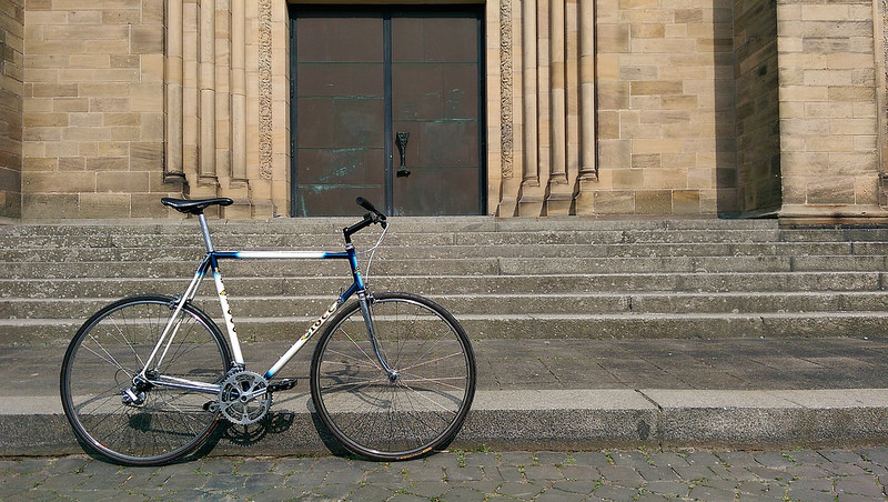 Nee, das seh ich nicht so tragisch. Ich hab das Teil irgendwann Ende der 80er neu gekauft, Rahmen mit Columbus Aelle Rohren (also eher untere Mittelklasse) und die erste Generation der Shimano Ultegra Gruppe dran. Als ich dann viele Jahre spaeter einen Principia Rahmen gekauft habe, habe ich Teile der Ultegra Gruppe daran ueberfuehrt und die Teile am Ciocc aus dem Fundus meines Vaters ersetzt. Daher stammt z.B. das deutlich aeltere Hinterrad und die sehr schoene Campa Rekord Kurbel. Hab mal ein Bild des Rades angehaengt.